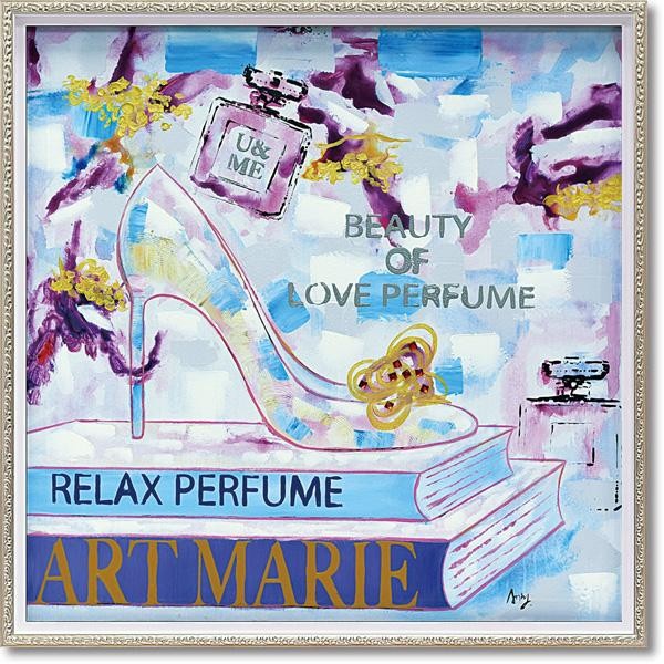 カラフルにハンドペイントされたキャンバスを、リッチなフレームにセットしたモダンアートです。