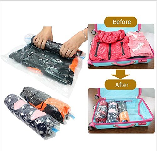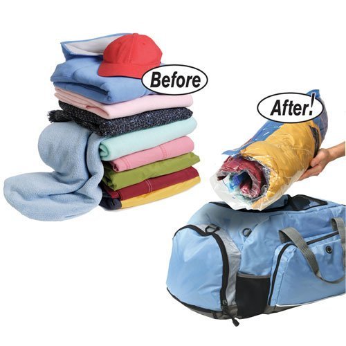 DESIGNED FOR TRAVELERS! You don't need a vacuum to have vacuum packaging for clothing, pump or any special equipment to use the plastic bags. All you need is to zip the roll up bag backpack and roll in order to push air out through the valves at the bottom of the bag. The bags are reusable and you don't need to buy other bags when you come back home.