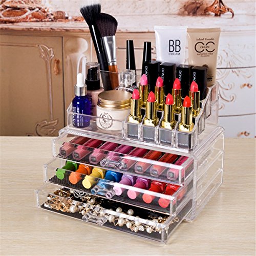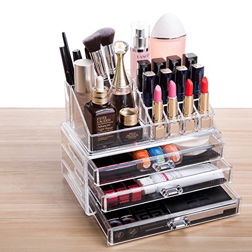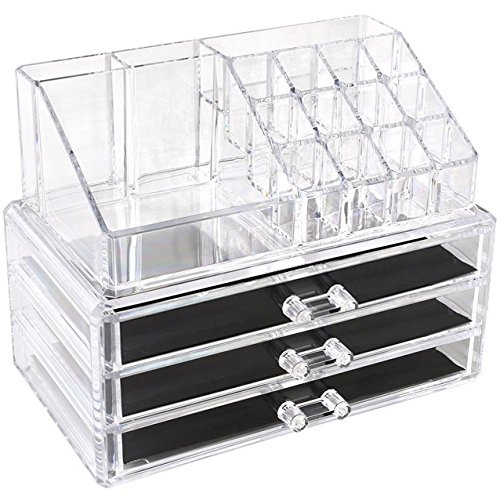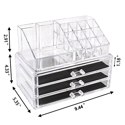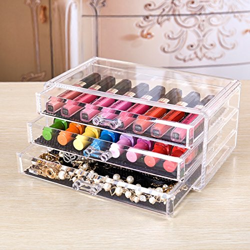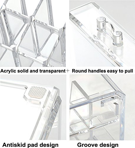 UNIQUE DESIGN & EASY TO CLEAN : Drawers open and close with ease. Acrylic Makeup organizer matches any decor, is idea for confessional and home use. The Acrylic Makeup Organizer is simply cleaned . 16 multi-size sections on the top and bottom 3 drawers.