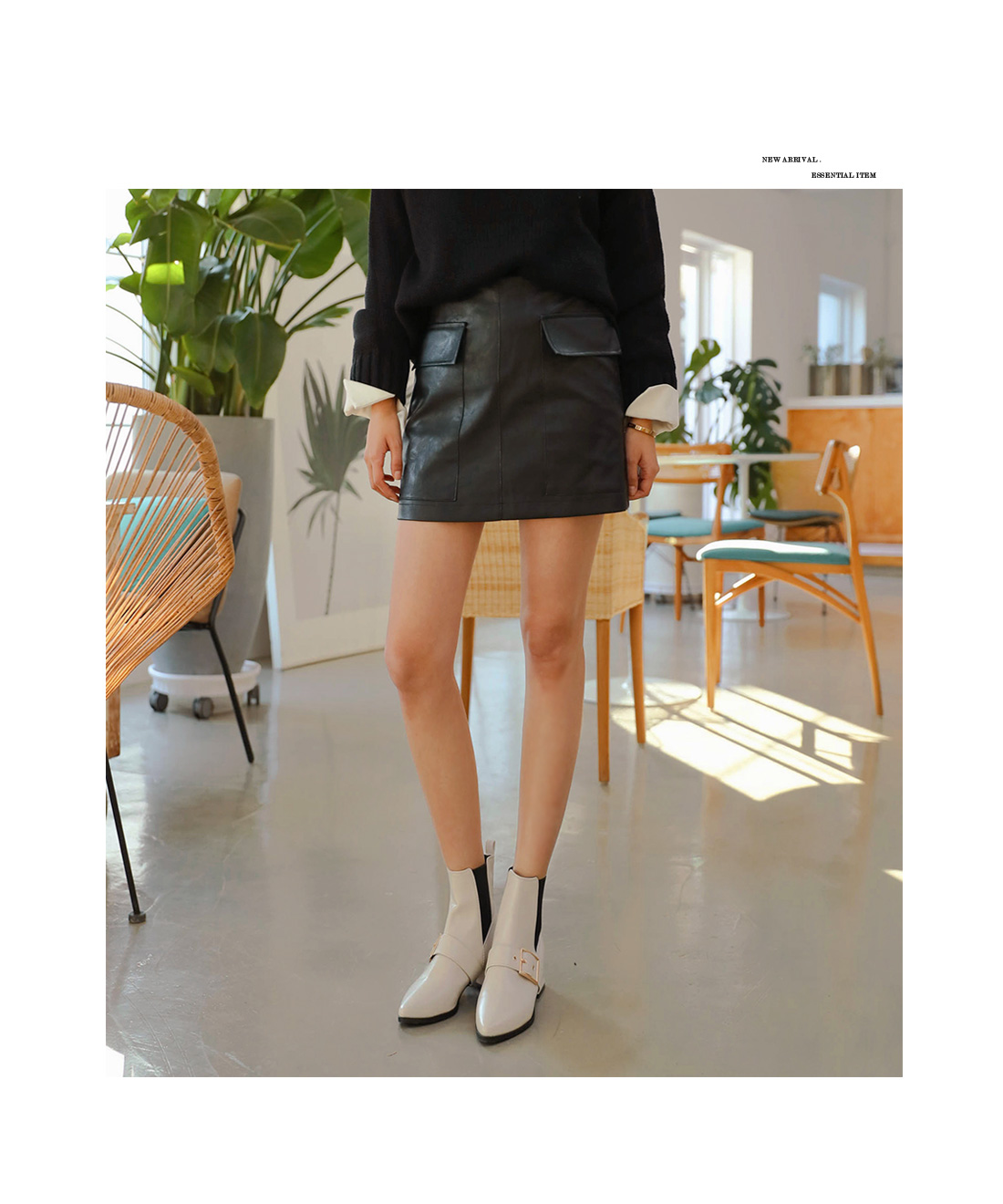 MD COMMENT 유니크한 디자인의 레더 미니스커트를 소개해드릴게요-!겨울까지 입을 수 있게 약간의 기모처리가 되어있구요 안감이 따로 있어서 더 편리하게 피팅하기 좋으실거에요-!양사이드에 주머니가 실용성을 높여주면서 밋밋할수 있는 디자인에 포인트를 주었어요.뒷지퍼로 착용하실때 불편함없이 편하게 착용가능하구요, 레더소재로 겨울에도 추워보이지 않아서 쭉-입기 좋으실거에요!레더스커트는 매년 보이는 아이템인 만큼하나쯤은 소장할만한 아이템이에요!MD 적극추천으로 얼른 초이스하세요-!COLOR/SIZE 블랙,아이보리S,MMODEL FITTING 블랙 / M