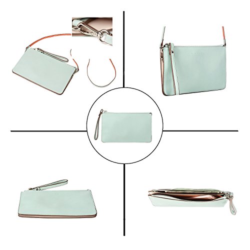 2:HANDBAG CLUTCH STRAP:A casual wristlet purse with an 43.3 inches adjustable and removable wristlet strap;An 6 inches detachable wristlet lanyard keychain