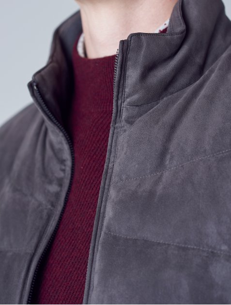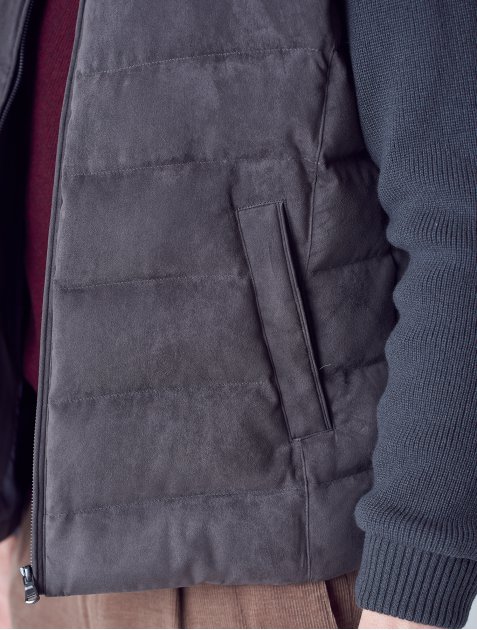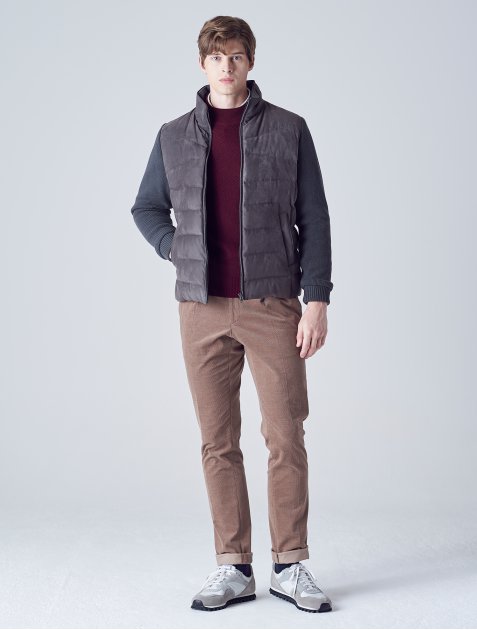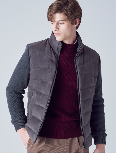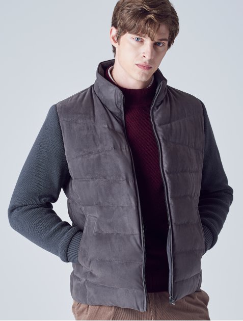 갤럭시 라이프스타일의 스웨이드 니트 배색 구스 다운입니다.