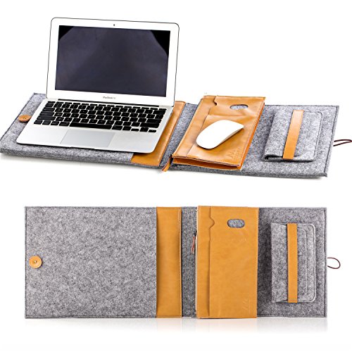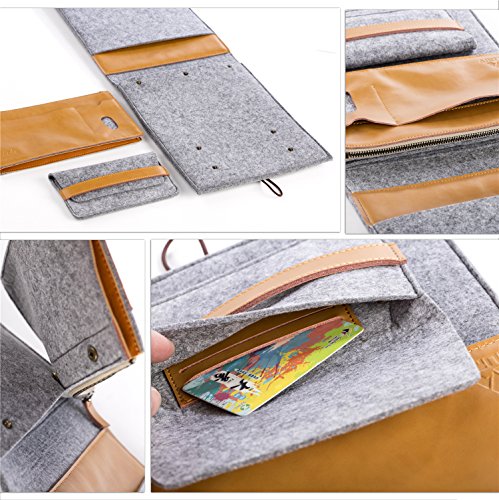 Mouriv Felt Sleeve Carrying Case Protector Cover Bag for 13 inch MacBook Air, Retina Macbook Pro, dell xps , Tablet Ultrabook Netbook Laptop , with 2 Detachable Small Pockets inside