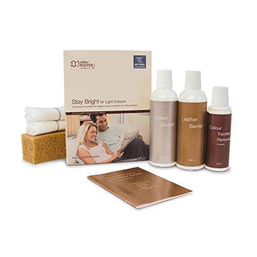 -. Feature : Color Transfer Remover (125ml), Leather Cleaner (225ml), Leather Barrier (225ml), Soft Cloth (2), and Sponge (1) / Very effective on light leather / Eliminates, cleans, and protects against color transfer on light leathers