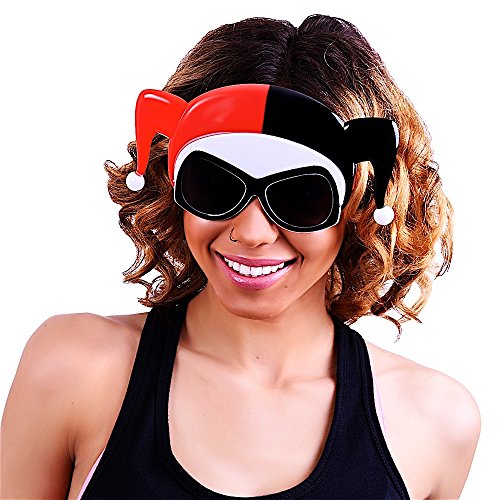 The Sunstaches Harley Quinn, Large Officially Licensed Sunglasses will allow you to become a supervillain and take you on your own unique journey. Sunstaches provide 100% UV 400 protection and ultimate party fun. These one-size-fits-most sunglasses transform you into the star of the show, whether it's a themed party and pop culture costume or your favorite character. As seen on Shark Tank, these sunglasses are comfortable and perfect for adults and children all of all ages! Sun-Staches can instantly transform anyone into the life of the party or the most interesting person at the supermarket. For the adults, it's the perfect way to bring out your inner kid-at-heart personality. Would you rather play a game of ultimate Frisbee with some boring guy without glasses or your neighbor who just happens to be wearing a leprechaun mask and having the time of their life? Our thoughts exactly.Feature