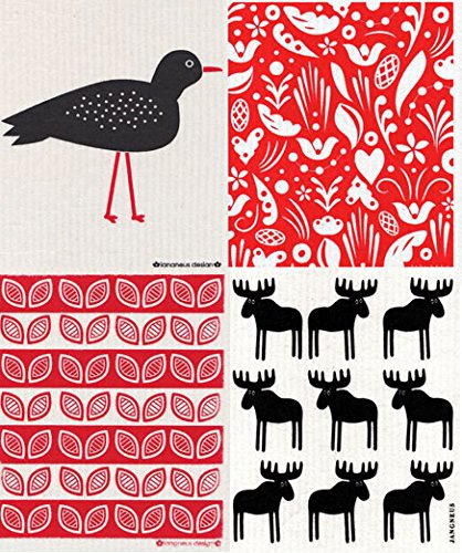 Swedish Dishcloth, Set of 4 - Black Designs (JA)