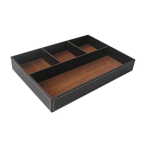 -. Feature : Sturdy and durable; wooden structure covered by high quality PU faux leather; interior and bottom are made of soft flannel. / Stylish designed, attractive, multi-functional. Double holder for pen pencil, remote control holder, 2 compartments in middle for cell phone or other small sundries. / Two classic color for choose, black and brown is available. Ideal for office use. / Dimensions:11.6 x 4.3 x 4.3 inches. / Just Box, No Tools.