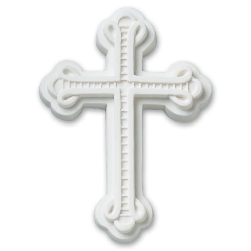 Product DescriptionElegant gum paste cross features ornate details. A great addition to baptism, confirmation, first communion or other religious-themed cakes. 4"L x 2 3/4"W.0