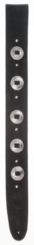 -. Feature : Black Conchos design / Made from high-quality black leather / Provides maximum comfort for standing situations / Adjustable from 44.5 to 53" long / A great gift idea for any guitar player