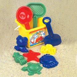 Studio : Rhode Island Novelty Publisher : Rhode Island Novelty Binding : Toy Product Description Fantastic little starter beach set for smaller children. A must for excursions to the shore. This 10-piece beach set includes shovels, molds, and a pail. Packaged in a netted bag. Smaller than usual beach sets: this little beach set was made especially for smaller children: bucket measures only 5 inches wide by 4.5 inches high. Shovels are 7 inches long. Due to it's compact size: this is also a great little set to take with you on vacations. Great for the sand box or beach. Bucket ships in assorted colors (yellow, red, blue or green). 0