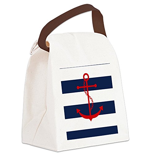 -. Title : CafePress - Red Anchor On Blue Stripes - Canvas Lunch Bag with Strap Handle