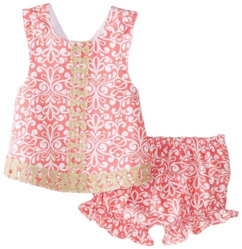 -. Binding : Apparel -. Brand : Mud Pie -. Color : Pink -. Department : baby-girls -. Feature : Elastic waist and leg bloomers make for easy changing / The thoughtfully designed criss-cross back and metallic and damask printed design is the perfect addition to your little one's summertime wardrobe -. Label : Mud Pie Baby -. Manufacturer : Mud Pie Baby -. ProductGroup : Apparel -. ProductTypeName : SHIRT -. Publisher : Mud Pie Baby -. Studio : Mud Pie Baby -. Title : Mud Pie Baby-Girls Newborn Flamingo Pinnafore and Bloomer