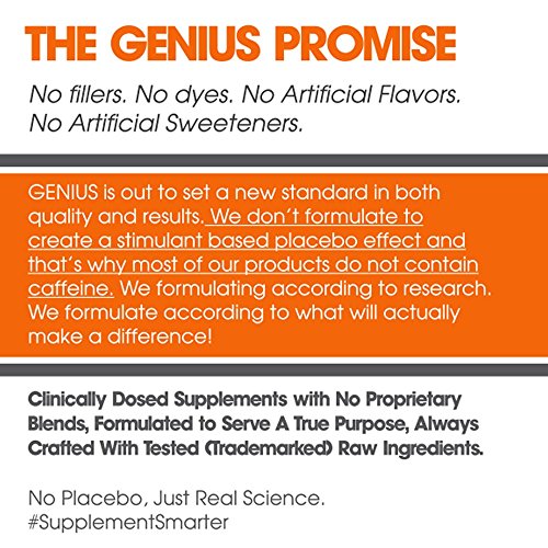 TRIGGER MUSCLE GROWTH – Arginine is a building block of protein that our body can’t create naturally. While the increased vasodilation results in greater protein synthesis, pure (Genius) arginine triggers the body to make more protein as well!