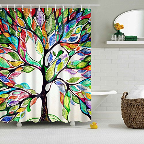 Homneer 72"x72" Bathroom Decoration Waterproof Polyester Shower Curtain Panel Multicolor Tree