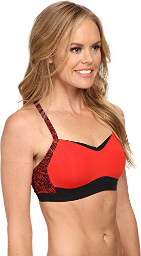 DriLayer® fabric transports moisture from the skin to the fabric surface for rapid evaporation. Four-way stretch enhances comfort and allows wider range of movement. Drilayer Adapt® straps stretch for a personalized fit. Stylish color block design adds pops of color for an attractive look. Moderate contouring enhances shape and provides complete modesty. Bonded scoop neckline, straps, armholes, and back. Seam-free removable molded cups encapsulate and compress to protect breast tissue from damaging horizontal, vertical and circular motion. Scoop neckline. Soft, brushed bottom band provides a personalized fit. Straps can be left apart or secured together with the J-hook for a beautiful racerback design. Soft padded three-column and three-row hook-and-eye closure. Logo hit at back. 85% polyester, 15% spandex;