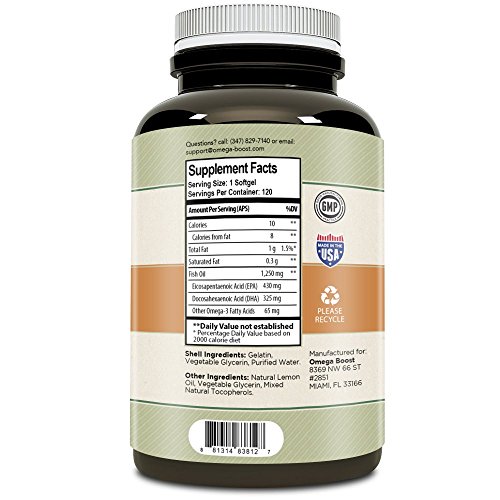 -. Title : Omegaboost Omega-3 Fish Oil (120 Capsules - 1250mg - Softgel) Lemon Flavored