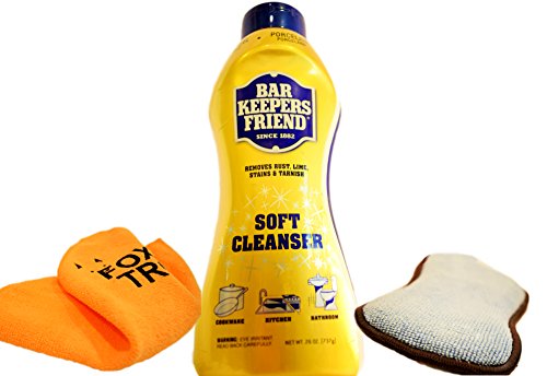 Bar Keepers Friend JUMBO SIZE Cleanser Pack, 26 OZ SUPER SIZE Bar Keepers Friend Liquid Cleanser Polish | Dual Sided Tough Scrub | Professional Grade Foxtrot TM Microfiber Towel (Liquid Cleanser)