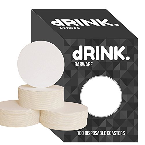 dRINK. barware 100 Disposable Coasters (Round Blank White Paper Coasters for Drinks, DIY Craft Projects, Letterpress Paper and Mini Art Boards)