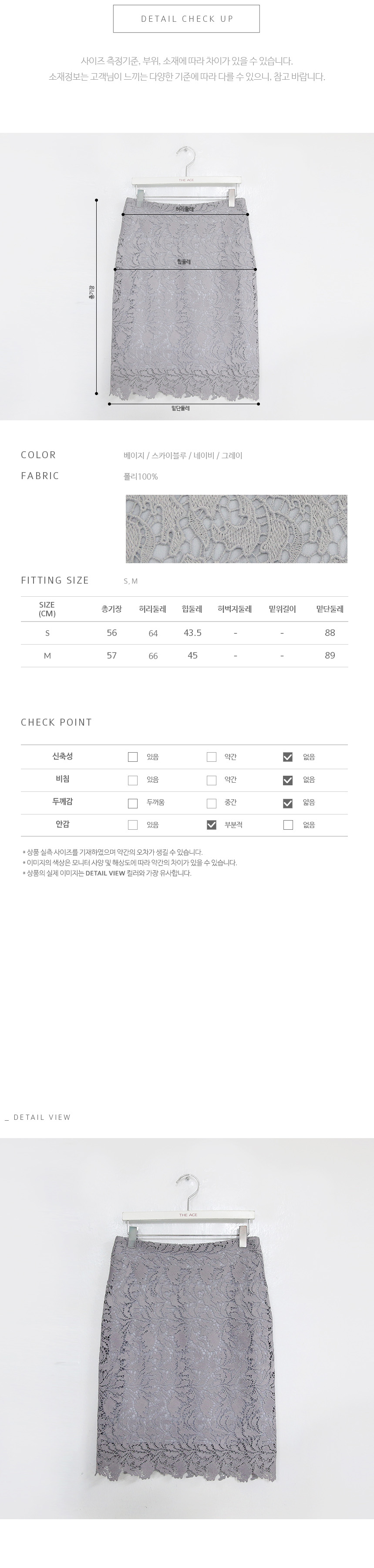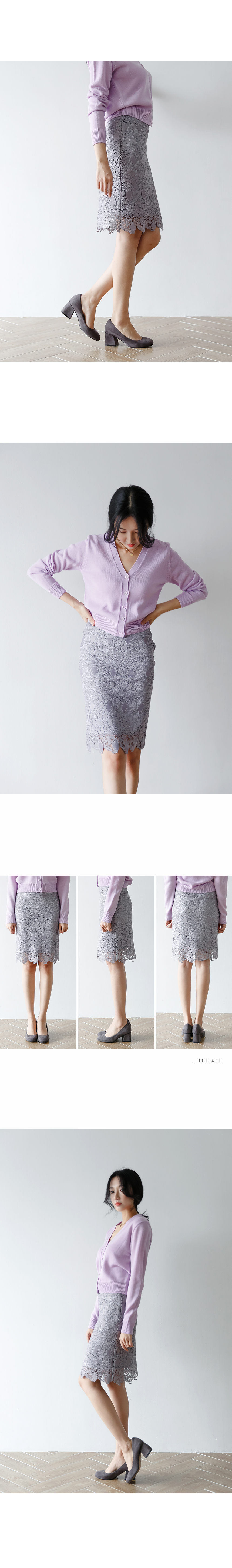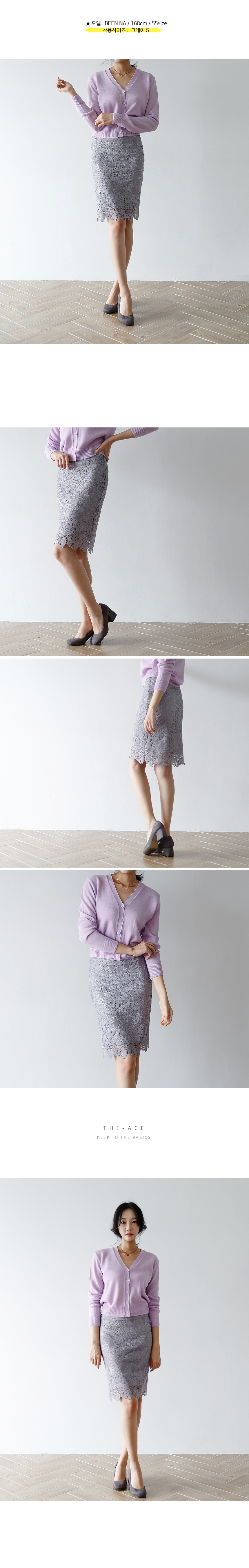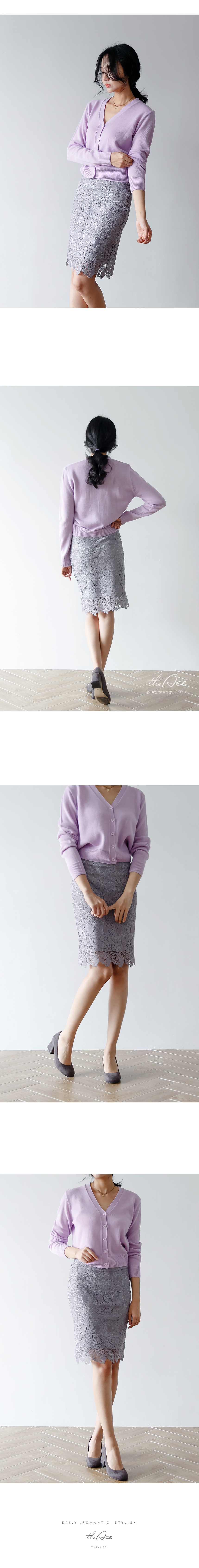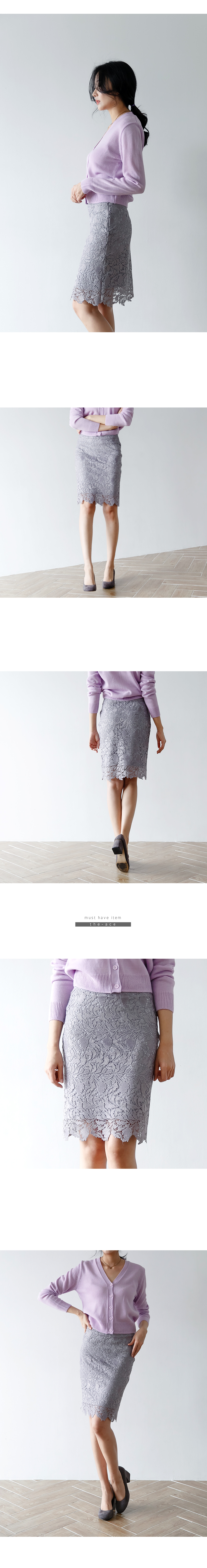 부드러운 질감의 레이스 스커트 특별한날 여성스러운 분위기로 하객룩, 데이트룩에 잘어울리는 예쁜 색감의 레이스 스커트에요 지퍼로 클로징해 깔끔한 허리선으로 무릎선까지 정갈하게 떨어지는 라인이랍니다 색상은 베이지, 스카이블루, 네이비, 그레이 사이즈는 S,M입니다 ▼ 관련상품 : 헤라 브이넥 가디건