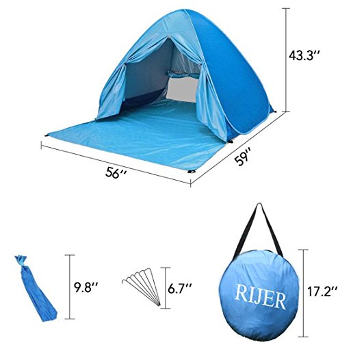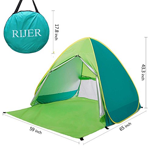 RIJER Portable Pop Up Tent, Instant Cabana UV Protection Sun Shelter Baby Tent Beach Shade Quick Installation Best for Camping/ Picnic/ Garden/Beach Times(2-3person)