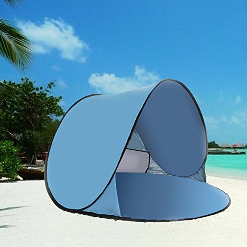 RIJER Outdoor 2-3 Persons Quick Automatic Pop up Tent Lightweight Waterproof Portable Cabana Beach Sun Shelter Sun Shade with Zipper Door and Foldable Curtains for Camping Fishing (Blue)