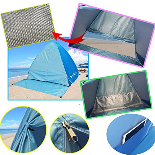 RIJER With Zipper Door Pop Up Portable Beach Tent Outdoor Anti UV Beach Shade Tent Sun Shelter, Automatic Instant Family Cabana for Camping Beach Fishing Garden