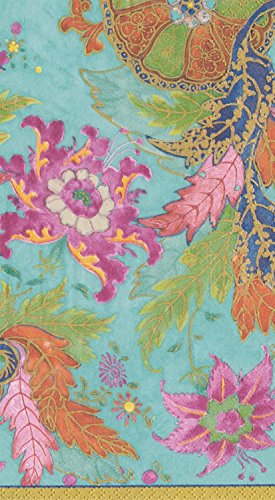 Entertaining with Caspari Tobacco Leaf Turquoise Paper Guest Towels, Pack of 15