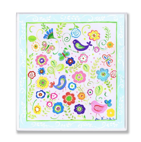 The Kids Room by Stupell Birds, Butterflies and Blossoms with Blue Border Rectangle Wall Plaque