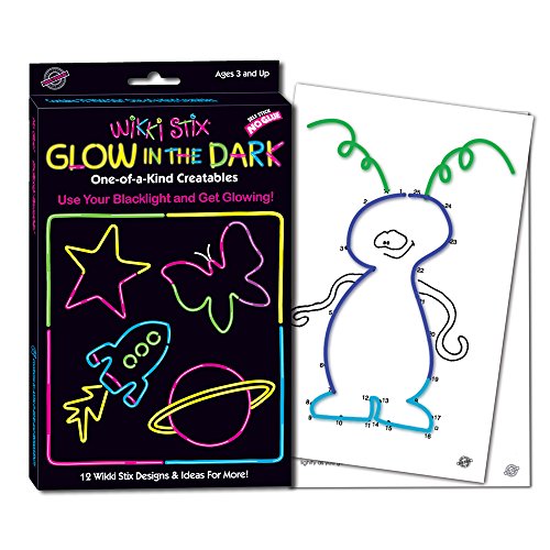 Watch your Wikki Stix glow in the dark, with a black light! 12 fun designs to make, plas ideas for lots more. Includes 72 wikki Stix. (Black light not included)