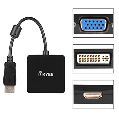 VGA HDMI DVI DisplayPort Adapter Converter 3-in-1 , UKYEE DP to DVI-i HDMI VGA Adapter 1080P Male to Female Spplitter for Dell HP Lenovo Asus HDTV(Display Port to DVI HDMI VGA Converter