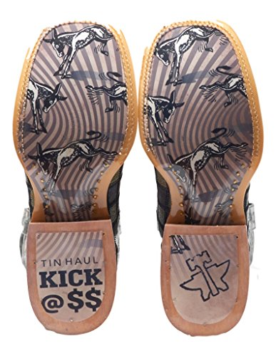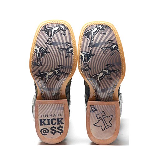 Studio : Tin Haul Shoes Publisher : Tin Haul Shoes Binding : Apparel Product Description These Tin Haul Kickin A$$ Boots With Mule Sole are made for today's modern fashionable cowboys. Handmade with amazing colors and a one of a kind outsole design that are sure to leave an impression. Stand out in the crowd with a bold pair of Tin Haul Boots. 0