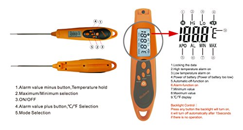 ±0.9°F Accuracy. Ultra Large 2" Backlit Display. Data Hold Function (Temperature Hold).