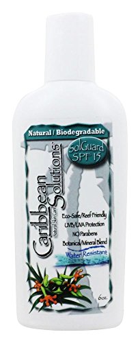 BIODEGRADABLE: 14,000 tons of sunscreen lotion wind up in corals reefs around the world each year, and one of their main ingredients, oxybenzone, leaches the coral of its nutrients and bleaches it white, killing the coral and disrupting the development of fish and other wildlife. The Caribbean Solutions Sol Guard includes natural and biodegradable ingredients to insure not only the safety of your skin, but our oceans and environments as well.
