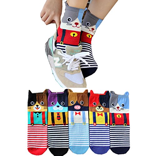 -. Title : 5 Pairs Soft Comfortable Novelty Cartoon Dog Cat Pig Crew Cotton Socks