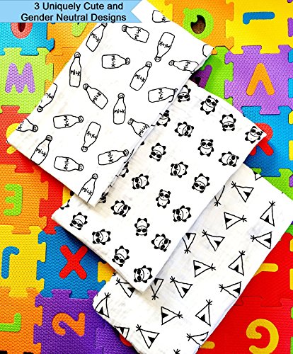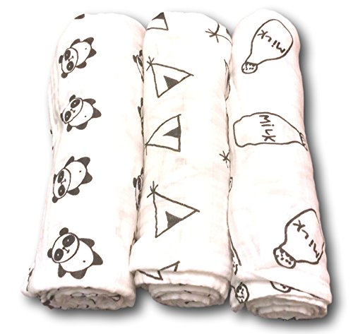 -. Title : Baby Swaddle Receiving Blankets - 100% Organic Muslin Cotton - Unisex - Large 47" x 47" size - 3 Pack, Black and White
