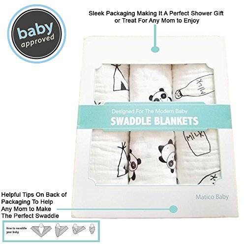 -. Feature : 4.9 OUT OF 5 STARS When you open up your new baby swaddle blankets gift box, you will see why customers give these swaddles 4.9 out of 5 stars. Better feeling cotton and long lasting durability. These swaddles were built for the modern day baby. / PERFECT GIFT for any new parent and gender neutral for those who have yet to find out whether their loved one will be a boy or girl. These swaddles come in cute, adorable, lovely patterns and now comes in a premium environmentally friendly box set. / IDEAL SIZE 47" x 47" of soft breathable baby cotton. Giving your loved one the perfect amount of swaddle. / VERSATILE swaddle muslin, receiving blankets, stroller covers, car seat covers, playmats, changing blankets, pram covers / GUARANTEE we stand behind our products and are confident you will love our 100% Cotton Swaddle blanket. Click the "Add to Cart" button and let your baby experience a whole new world of swaddling!