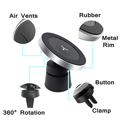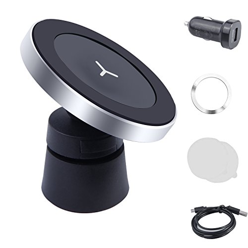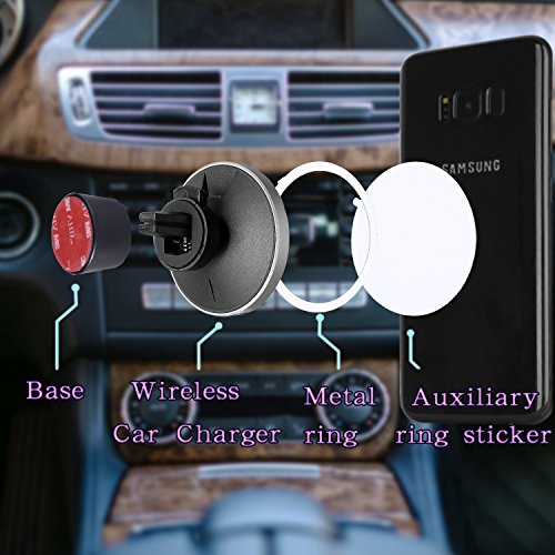 Studio : FindUWill Publisher : FindUWill Binding : Wireless Phone Accessory Product Description Why choose us: Our product is a very convenient wireless car charger,with unique magnetic design ,it takes magnetic wireless charging for Smartphone-suction is charging.It is installed and clamped at the air outlet or paste other place,so it can also serve as car holder for your comfortable car life. Package includes: 1 × Wireless Car Charger 1 × Cradle Mount with 3M sticker 1 × Micro USB Cable 1 × Metal ring with 3M sticker 1 × Free QC 3.0 2 × Auxiliary ring sticker 1 × User Manual Specifications: Material: ABS Magnet Silicone HFS Input: DC 5V / 1.5A Output: DC 5V / 1A Conversion Rate: 70%(Max) Dimension: 2.56in(diameter) 2.06in(height) Weight: 0.2 lbs Cable length: 1m/ 3.28ft Notes: 1.The big metal ring should be attached between your phone and phone case.The back cover of the glass needs to be used of the Auxiliary ring sticker,then use your big metal ring. 2.Please note that wireless charger will not work if your phone case is over 2mm thickness. 3.Please connect this charger with full 1.5A output. Insufficient input current may cause unstable charging. 4.For phones that are not Qi enabled, wireless charging receiver is recommended. 5.To prevent a short circuit, please don't disassemble or throw our device in severely hot,humidor corrosive environments. 6.This model is NOT fast charger, it's a standard wireless charger which charges your device with standard speed, and the output is 1A. 7.Metal plate with 3M sticker is to work for magnetic cradle and magnetic rings is to help strengthen magnetism between charger and your device.You can put the magnetic ring inside the phone case and cover it with your phone, so it won't fall off so easily.If your phone doesn't have a phone case,you can affix the auxiliary ring sticker and metal ring directly on the phone,wait for a while to use it,and it will no