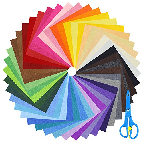 Biging 42 Pieces DIY Polyester Soft Felt Fabric Squares Sheets Including Scissors, Assorted Colors for Crafts, 1.5mm Thick (6 x 6 inch)