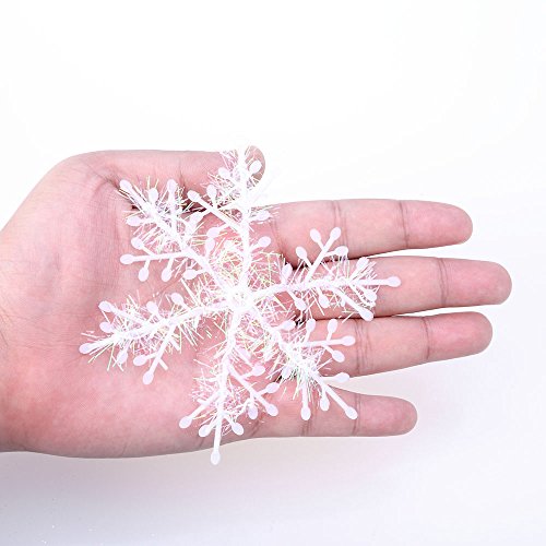 AGM 4.3'' Classic White Glitter Snowflake Christmas Tree Ornaments Holiday Decor, Set of 30 (white)