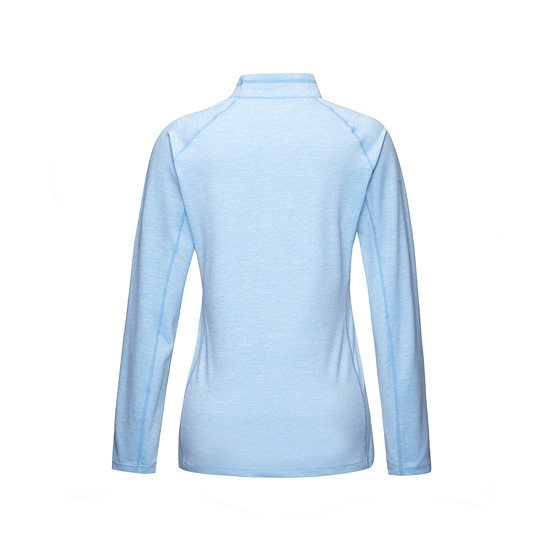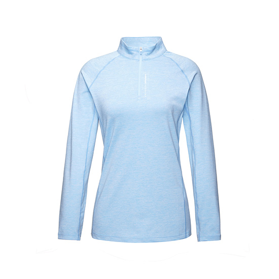 - 멜란지 컬러감과 슬림한 실루엣으로 완성된 여성 반집업 티셔츠.