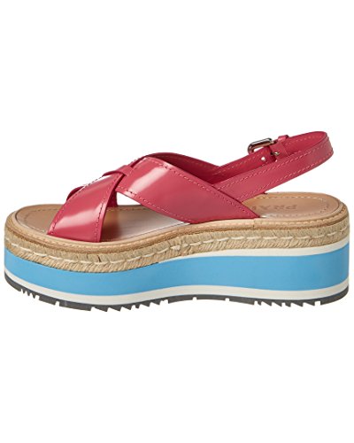 Studio : Prada Publisher : Prada Binding : Apparel Product Description Please note: Size selections are European. For US conversions, please reference size chart.. Made in Italy. Color/material: pink patent leather. Design details: steel finish hardware. Adjustable ankle strap with buckle closure. Lightly padded leather insole. Rubber sole with traction. 2.5in heel. 1.75in platform. Please note: All measurements are approximate and were taken from a size 37; slight variations may occur. 0