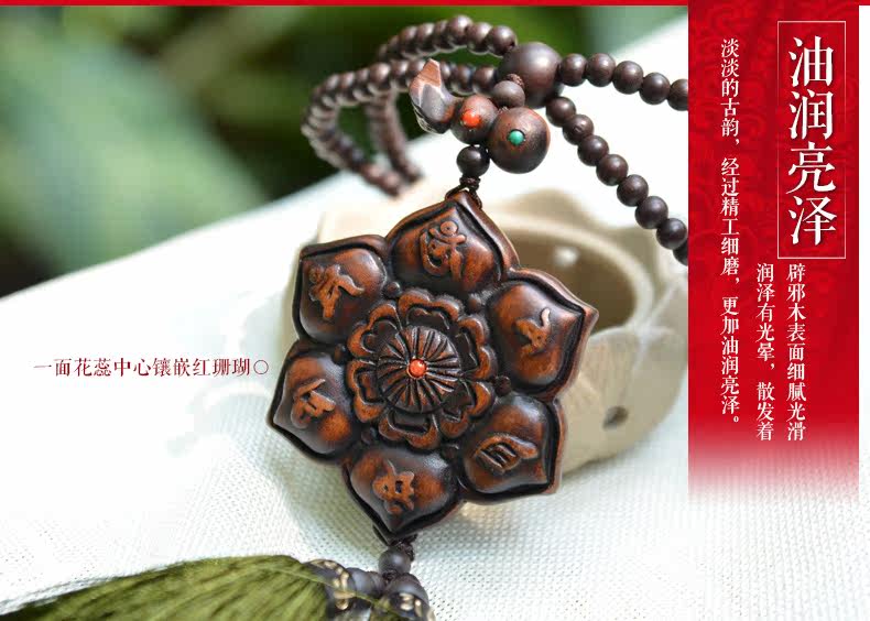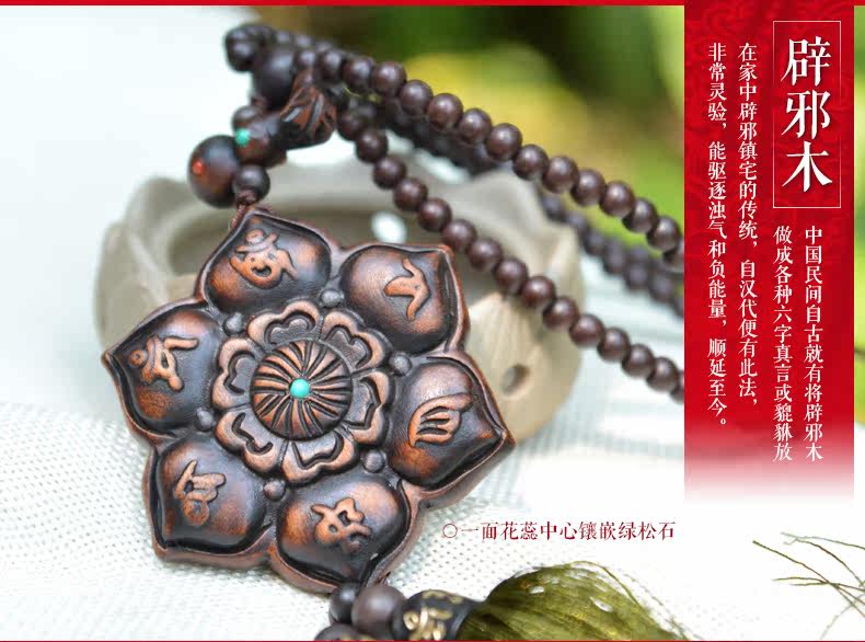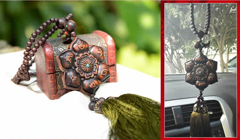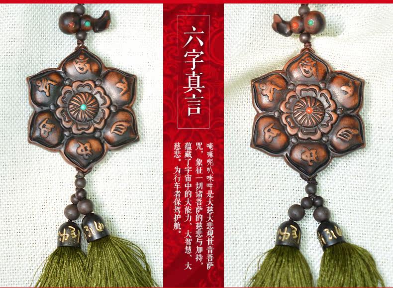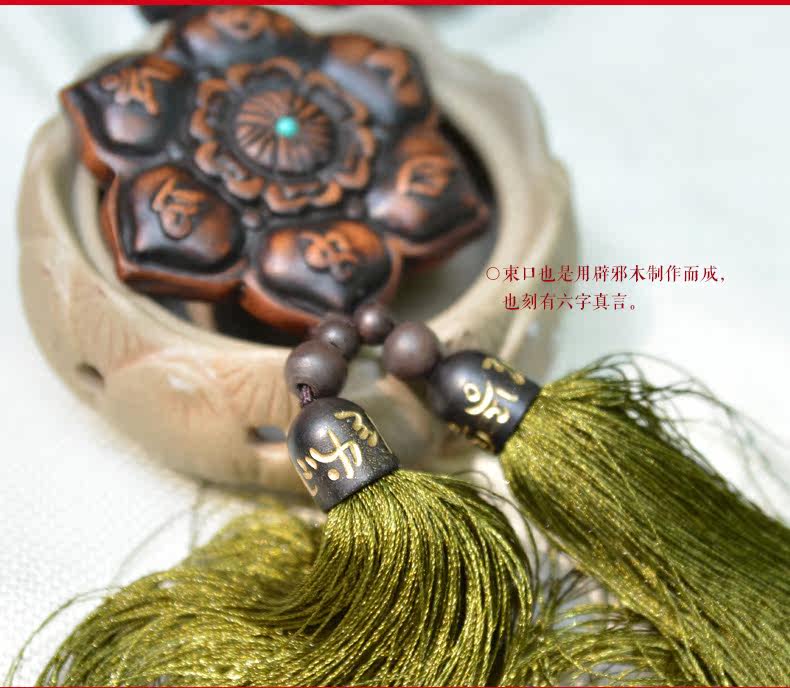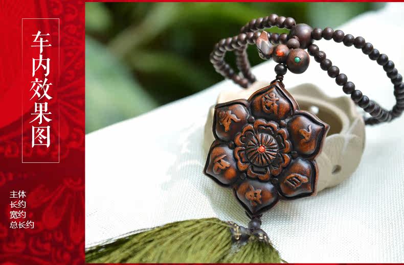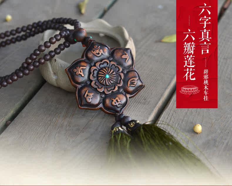 天然桃木汽车挂件精雕六字真言莲花车挂饰保平安车载高档挂坠吊坠