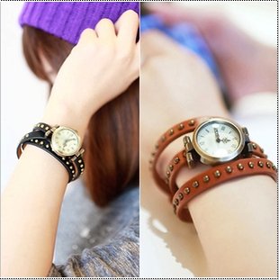 Cute retro leather cord bracelet-like fashion, fashion Watch (Brown)