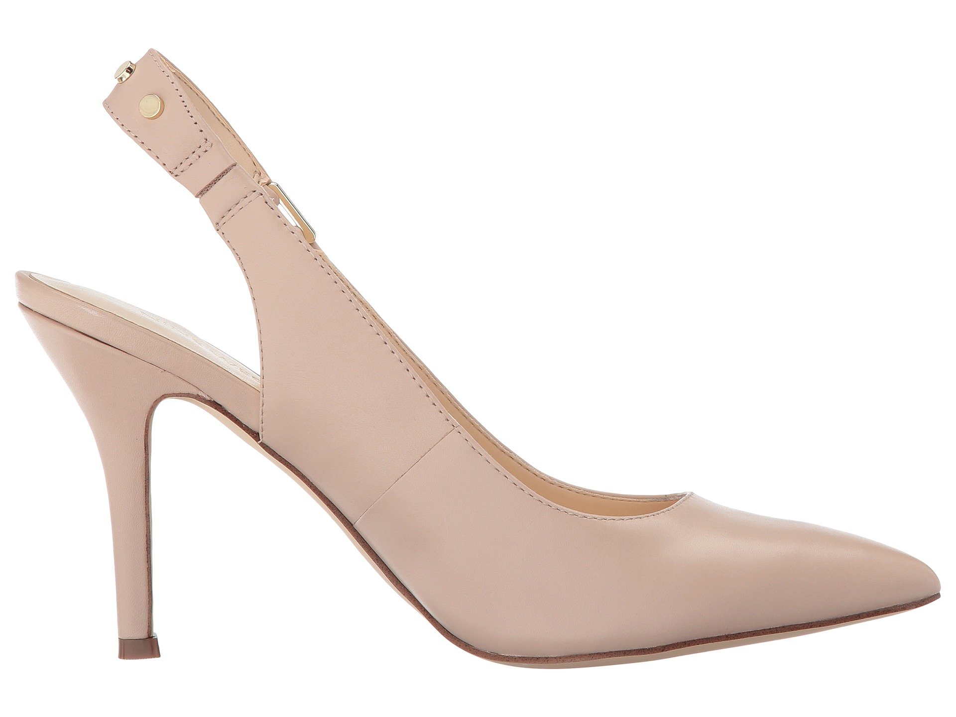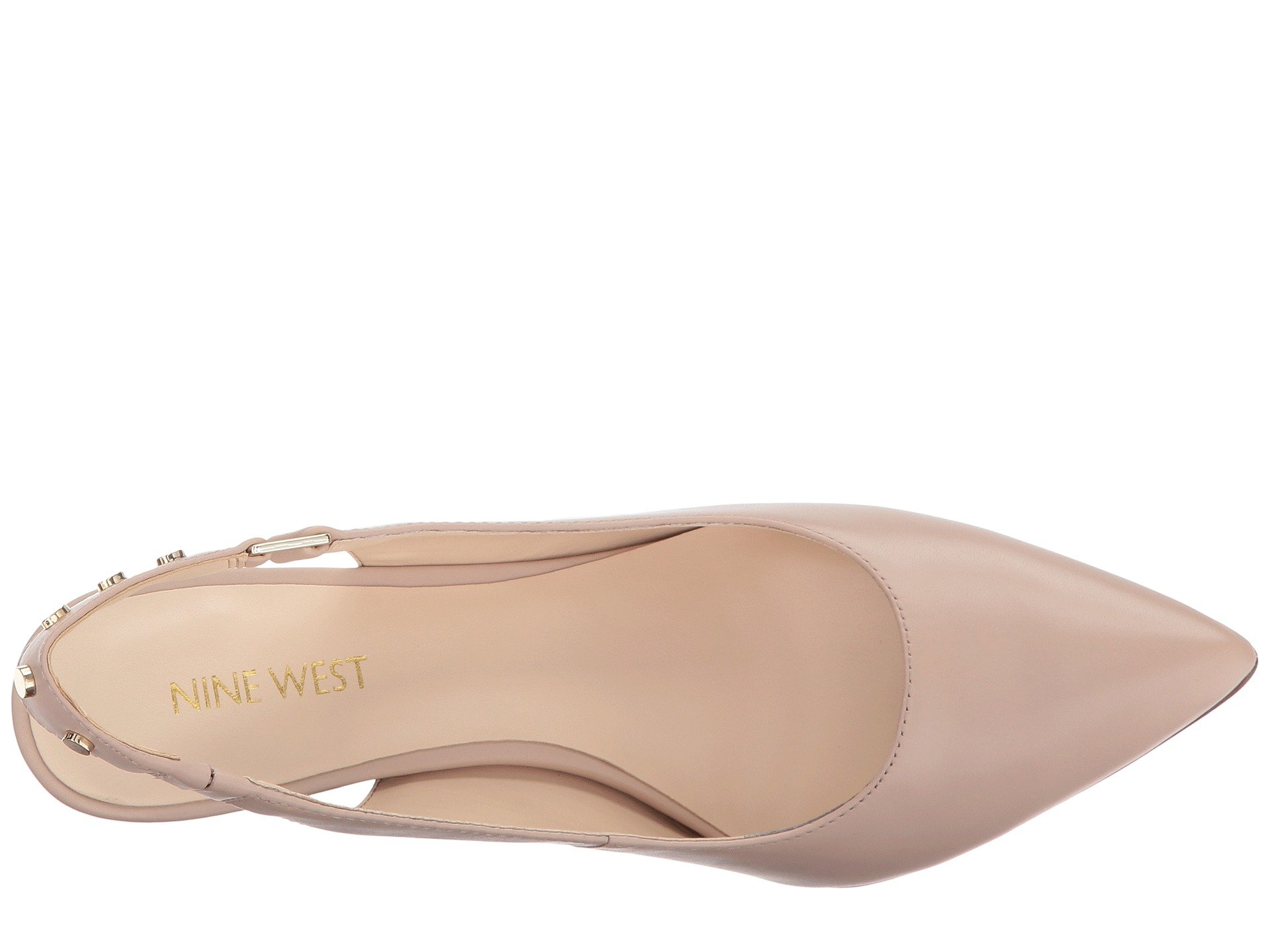 | Product Information SKU: #8947251Dare to be admired when you update your bold look with the Nine West? Francena pump.Leather upper.Slip-on design.Pointed toe.Slingback ankle strap with studded details.Man-made lining.Lightly padded footbed.Wrapped heel.Man-made outsole.Imported.Product measurements were taken using size 8, width M. Please note that measurements may vary by size.Weight of footwear is based on a single item, not a pair.Measurements: Heel Height: 3 1?2 in Weight: 10 oz |