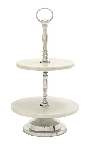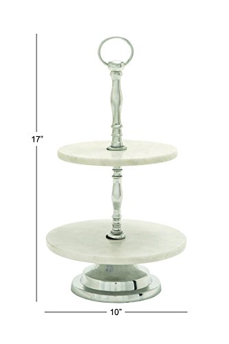 Deco 79 47545 Aluminum Marble 2 Tier Tray, 10" x 17"