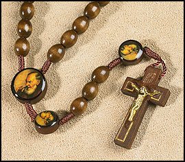 Saint St Padre Pio Pietrelcina 10MM Wood Bead 19" Cord Rosary with Prayer Card