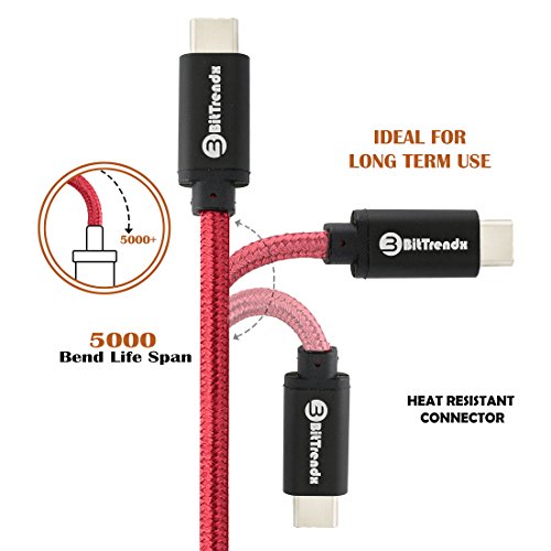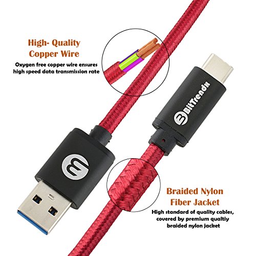 USB Type C To USB 3.0 Cable, BitTrendx 6.6 Feet Metal Shell Nylon Braided USB C Data Sync Charging Cord for Samsung Galaxy S8 S8 Plus Google Pixel Nexus 5X 6P LG V20 OnePlus 2 3 Huawei P9 (Red)