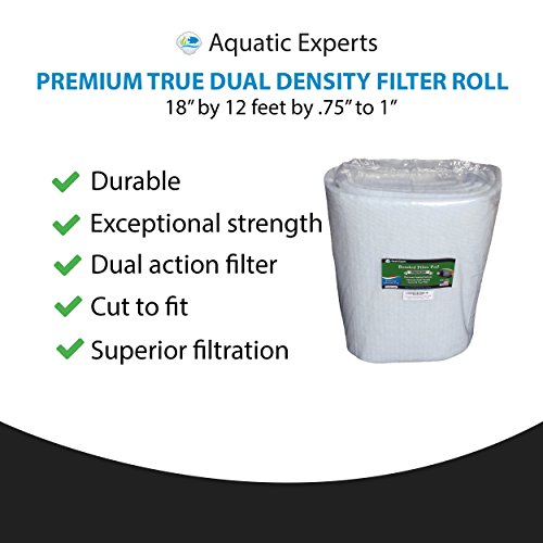 Premium True Dual Density Filter Roll - 18 inch by 12 FEET Long by .75" to 1" - Aquarium Bonded Prefilter Media Pad Dye-Free - Custom Made In USA For Aquatic Experts