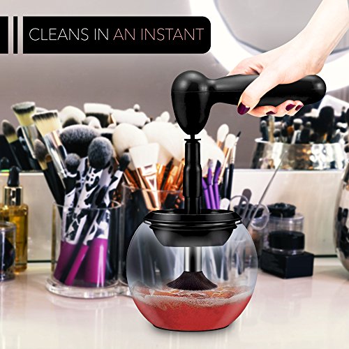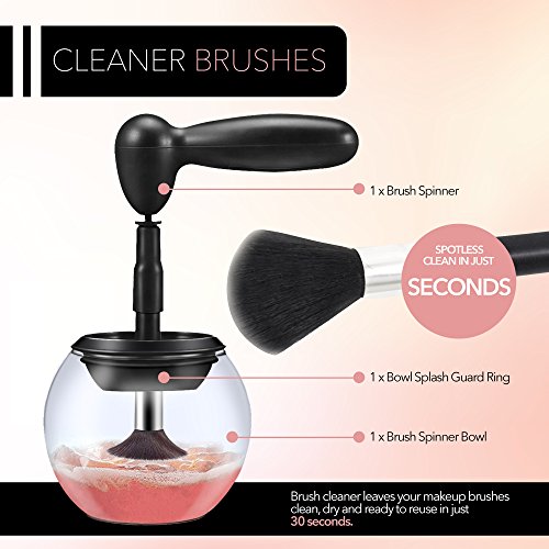 - ❤️EASY TO USE; Professionals recommend you to clean your brush heads and eye brushes every week or two. There are 4 simple steps: Attach the collar with brush to the black rotating spindle, pour water and soap into the bowl, dip and spin to clean, raise and spin to dry.