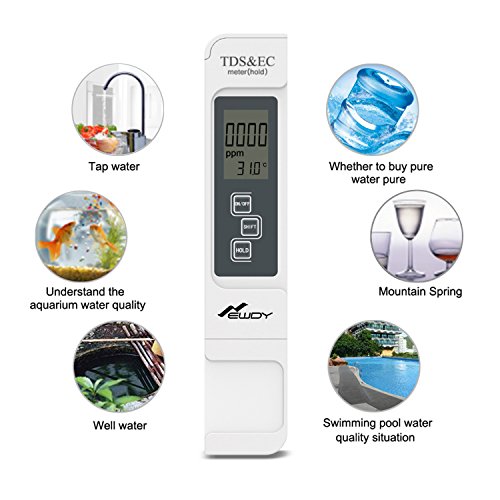 -. Title : Newdy Digital TDS Tester Meter for Water Quality Testing, 3-in-1 Accurate(TDS,EC,Temperature), 0-9990 ppm, 1 ppm Resolution,+/-2% High Accuracy, Battery Included-Pocket Size Water TDS Tester